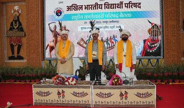 The event began with the ceremonial lamp lighting by ABVP National President Dr Rajsharan Shahi, National General Secretary Dr Virendra Solanki and National Organising Secretary Ashish Chauhan. Representatives from across the nation were welcomed with traditional Chhattisgarhi folk dance and local musical instruments.