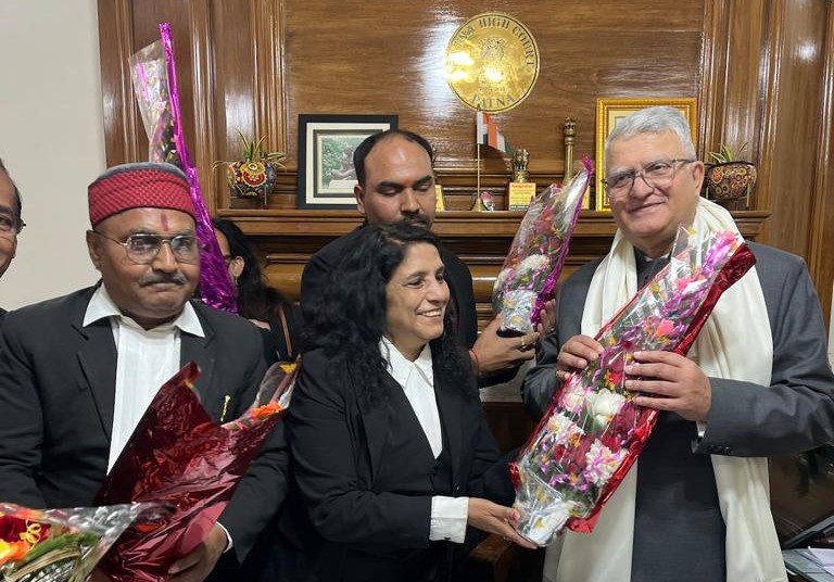 Vice President of Advocates Association, Mrs Chhaya Mishra along with others presented bouquet to Justice Singh at Patna High Court and extended best wishes for his new assignment.