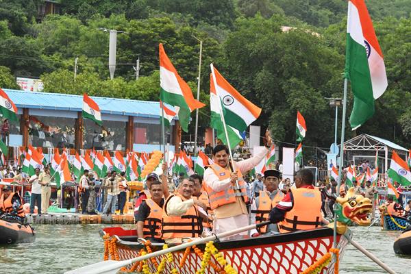 Chief Minister Dr. Yadav was addressing the gathering after flagging off the ‘Jal Tiranga Yatra’ from Bhopal’s Boat Club at the Upper Lake under the ongoing ‘Har Ghar Tiranga’ Abhiyan in the state. He waved the green flag to start the ‘Jal Tiranga Yatra’ and released a large number of ‘Tricolour’ balloons into the sky. Water sports players, riding boats used in Asian and Olympic Games, carried the national flag with discipline and pride, advancing across the Upper Lake. The sky, water and land in the area turned ‘Tricolour’. A large number of water sports athletes, students and residents of the capital took part in this unique and exciting event that strengthened the spirit of patriotism, unity, and dedication.