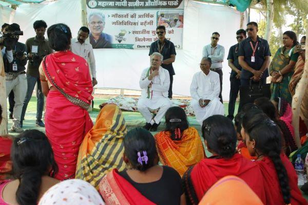 The Chief Minister visited the Kharsura Gauthan and interacted with the self-help groups associated with the project. They said the project had given them stable work and income.