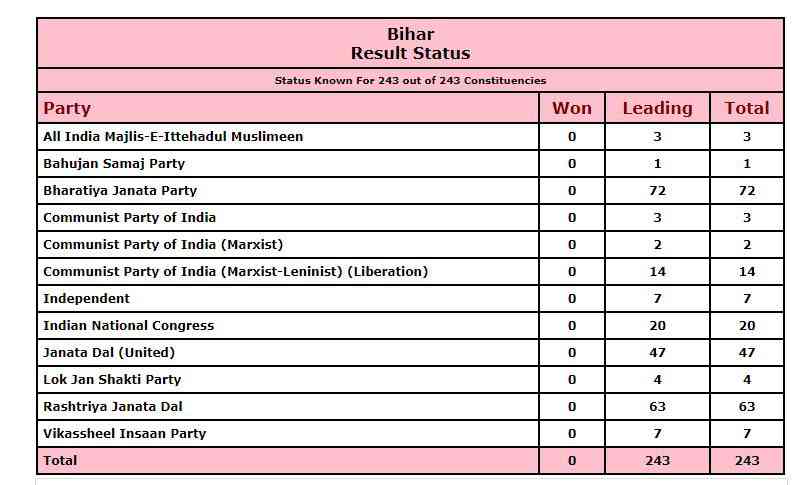 Till noon, it was 127 for NDA and 106 for Grand Alliance.