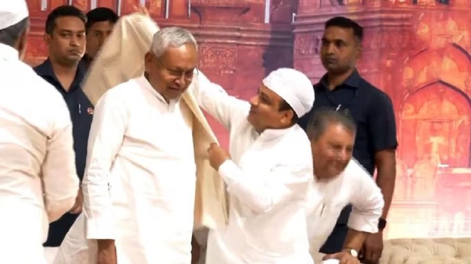 Chief Minister and his finance Minister Vijay Kumar Chaudhury, both with Islamic prayer caps on their heads, were seen taking eatables from the plate after Maghrib prayers were played on the public address system from the adjoining mosque. Phulwarisraif is predominantly a Muslim inhabited area on the western Patna. It was here, the NIA had busted the module of outlawed PFI and arrested over 20 activists last year.
