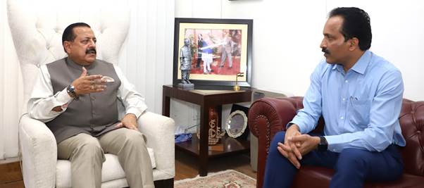 Chairman, ISRO (Indian Space Research Organisation) and Secretary, Department of Space, Dr S. Somnath called on the Union Minister of State (Independent Charge) Science & Technology; MoS PMO, Personnel, Public Grievances, Pensions, Atomic Energy and Space, Dr Jitendra Singh in New Delhi today and apprised him of the status and readiness of Chandrayaan-3 for the moon landing scheduled on 23rd August 2023 in the evening.