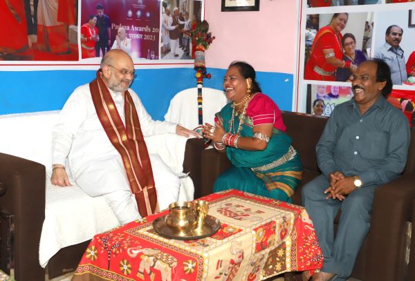 Earlier, Shah visited the residence of Padma Shri awardee Usha Barle located in Sector 1 of Bhilai Steel Plant township. During the award ceremony, Shah had promised her to visit house when he comes to Chhattisgarh.
