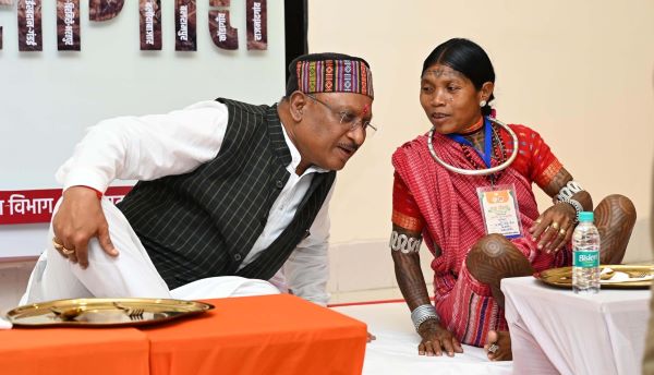 Sai occupied the place in a row with Mitanin Jayamani Nag from Bastar Darbha and Dasni Bai of Baiga tribe of Kawardha. The delicious menu included Dahi Mirchi, Laai Badi, Bijori, Rice Papad, Chana, Lal Bhaji, Jimikanda, Munga Ki Sabzi, Idhar Kadhi, Stuffed Bitter Gourd, Rice, Kodo Rice, Roti, Ragi Laddu, Andarsa, Gulgula, Pidia, Mattha etc. Fruit salad was also served at the beginning of the meal.