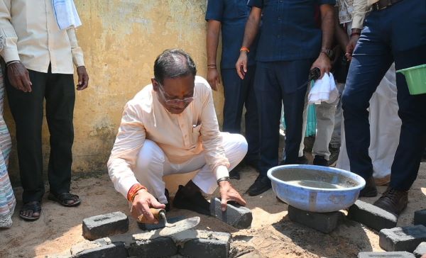 Sai reached Baldakchar village, a village dominated by Kamar tribe of Kasdol, under the state-wide Sushasan Tihar on Friday. He observed the soak pit being constructed by Jal Sanchay Vahini for water conservation under the More Village, More Water (my village, my water campaign). He himself took a trowel and laid bricks in the soak pit under construction.