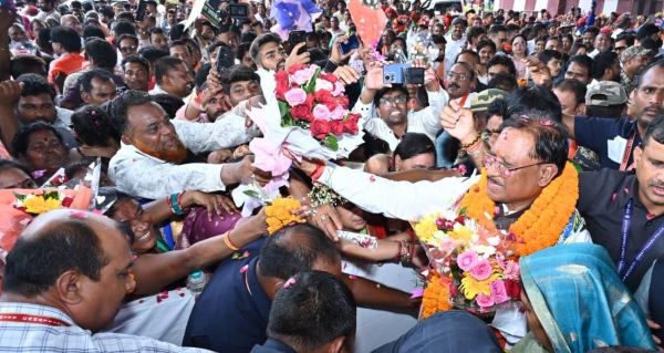 He was greeted with floral bouquets and garlands. Covering a distance of nearly 100 metres from the airport exit to the media gallery took him about 15 minutes, as people showered flowers along the way. Later, addressing the gathering, the Chief Minister expressed gratitude for the grand reception. He said that both Japan and South Korea have a large Indian community, including many people from Chhattisgarh engaged in business there. Meeting them was heartwarming, and it did not feel as though we were in a foreign land. He added that Indian entrepreneurs and traders are spread across the world, bringing glory to the name of Bharat everywhere.