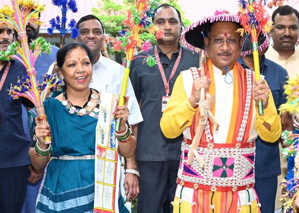 Attendees of the ‘Hareli Tihar’ at the Chief Minister’s residence enjoyed a vibrant showcase of Chhattisgarh’s folk culture. The event featured folk music, traditional Gadwa Baja, Raut Nacha, and Gedi dance. Various folk artists performed the Raut Nacha, Karma dance, Bastariya dance, and Gedi dance. At the request of the Raut Nacha performers, the Chief Minister donned traditional Chhattisgarhi attire, boosting the artists’ morale.