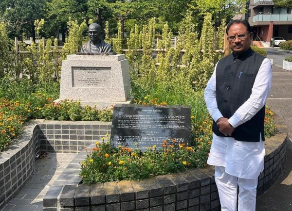 During his Japan visit today, Chhattisgarh Chief Minister Vishnu Deo Sai reached ‘Little India’ in Tokyo, where he offered floral tributes to the statue of Mahatma Gandhi and paid his respects.