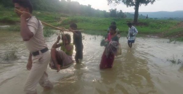 Chhattisgarh police jawans set an example of humanity and rescued a pregnant woman in labor pain from a pocket that was inaccessible for four wheelers.