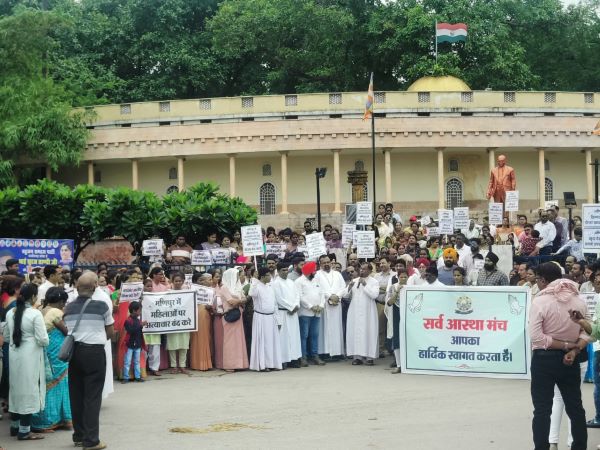 A delegation later met Governor Biswabhusan Harichandan and handed over the memorandum addressed to the President of India. The President of the Manch and Most Archbishop Victor Henry Thakur, CNI Bishop The Right Reverend Ajay Umesh James, Secretary Nitin Lawrence, Vice President of the Manch and representative of Sikh community Sardar Manmohan Sailani and Advocate Faisal Rizvi from Muslim community, painter Nisar Ali and Mr. Hussaini, Manch Spokesperson and Jain Samaj representative Premshankar Gautia, General Secretary Father Sebastian P, Sister Deepika, Ruchi Dharmaraj, Mary also addressed the gathering.