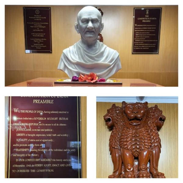 It is also noteworthy that every step of the Chief Justice is in accordance with the intention of the Constitution On the occasion of Gandhi Jayanti, the bust of Father of the Nation Mahatma Gandhi has been installed in the Chhattisgarh High Court building and also the plaque of the Preamble of the Constitution and the national emblem (Ashoka emblem), have been installed in the High Court