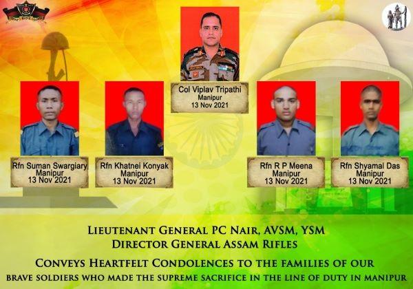 Besides the officer, his wife Anuja, their 6-year-old son Abeer, and four jawans were also killed when Colonel Tripathi’s convoy was ambushed by PLA militants near the Sehkan village in Churachandpur district while returning from the Behiang Coy post at about 10 am on Saturday. IEDs were used by the militants before the Assam Rifles personnel engaged them in a firefight.