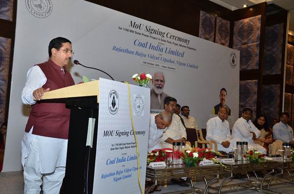 As part of its diversification programme for clean coal energy, Coal India Limited (CIL) signed a Memorandum of Understanding with Rajasthan Vidyut Utpadan Nigam Limited (RRVUNL), for developing a solar power project of 1190 MW today in Jaipur.