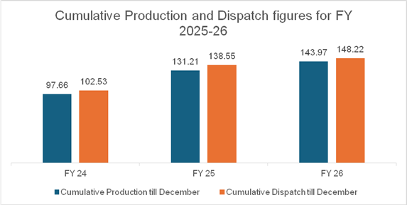 Cumulatively, for the financial year 2025–26 up to December, the sector has demonstrated robust performance, with coal production registering a year-on-year increase of 9.72% and dispatches rising by 6.98% compared to the corresponding period of the previous financial year. These encouraging trends reflect improved operational efficiency and more effective utilization of mining capacity across the sector.