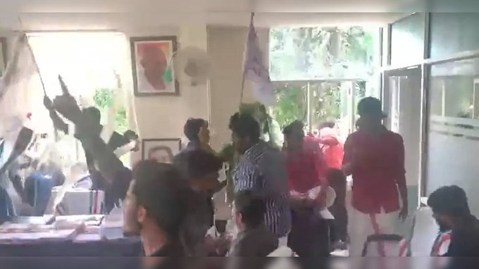 Videos posted by Youth Congress show that the miscreants carrying SFI flags entered the office of Rahul Gandhi and clashed with the Congress workers present in the office. The workers of SFI and Congress also clashed in the office. The Congress has alleged that members of the SFI entered Rahul Gandhi’s office in Wayanad, vandalised property and attacked people at the office.