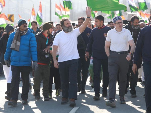 The yatra today entered Kashmir from Banihal of Jammu region, crossing the Jawahar tunnel in Qazigund in a bulletproof vehicle. The National Conference leader and former Jammu and Kashmir Chief Minister Omar Abdullah joined Gandhi for the walk in the valley. Both leaders were dressed in white T-shirts in the 7 degrees Celsius chill.