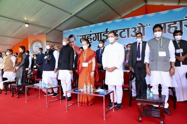 The Congress staged a mammoth rally against inflation in Jaipur on Sunday, calling upon the people to oust the BJP from the power at the Centre.