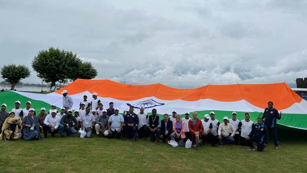 The Ministry of Tourism, Govt. of India (North), Institute of Hotel Management Srinagar and Himalayan Mountaineering Institute (HMI), Darjeeling in a joint effort displayed a 7500 Sq. Ft Indian Tricolour at the bank of Dal Lake, Srinagar.