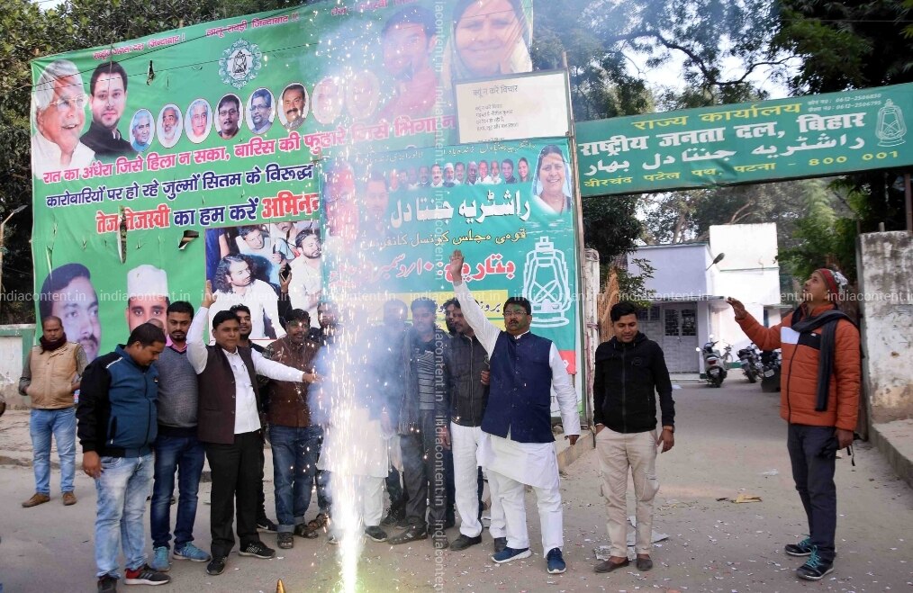 A BJP spokesman said orders of crackers worth Rs 5 lakhs and 100 kgs of Ladoos have been ordered in Patna City area for celebrations tomorrow.