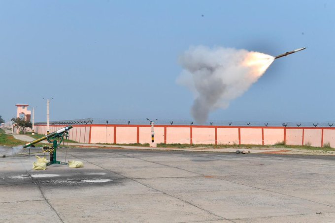 DRDO conducted two successful flight tests of Very Short-Range Air Defence System (VSHORADS) missile on 28th and 29th Feb 2024 from a ground based portable launcher off the coast of Odisha from Integrated Test Range, Chandipur.