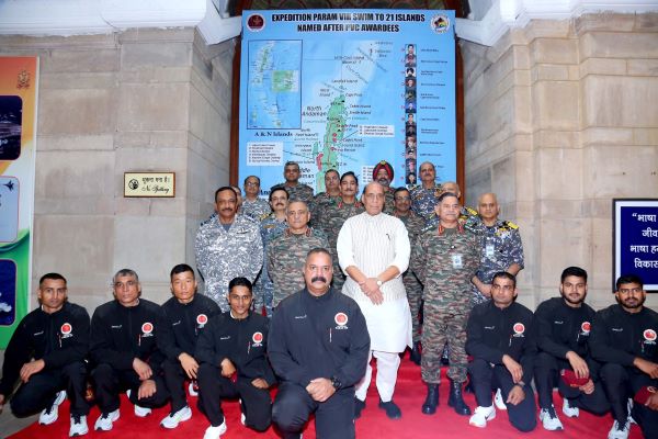 During the event, the Expedition Flag was handed over to the Raksha Mantri by the team. The flag was witness to the entire expedition, its challenges, camaraderie and finally the successful completion. It represents the cause and stirs emotions of patriotism and pride. Chief of Defence Staff General Anil Chauhan, Chief of the Army Staff General Upendra Dwivedi, Commander-in-Chief of the Andaman & Nicobar Command (CINCAN) Air Marshal Saju Balakrishnan and other senior officials were present during the flag-in ceremony.