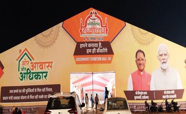 Throughout the event, the Government of Chhattisgarh will organize a grand and visually appealing exhibition at the Rajyotsava venue. A Craft Village will be set up to display and sell a variety of Chhattisgarh’s handicrafts. Large domes have been constructed at the venue for the exhibitions: Dome-1 and Dome-2 will feature government department stalls, Dome-3 will showcase commercial enterprises, and Dome-4 will host public sector institutions. Shilp Gram, Food Court, and Meena Bazaar are expected to be major attractions for attendees at Rajyotsava.