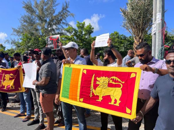 Meanwhile, a protest has started at Carnival Area in Male’ City as Sri Lankans urged the authorities against letting President Rajapaksa take refuge in the Maldives. Some posters held by protestors read that President Rajapaksa had driven Sri Lanka into bankruptcy.