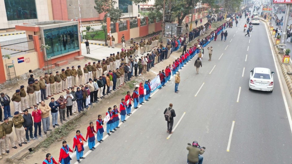 Farmers did not join the Human Chain as they were neck deep in harvesting of crops and their disposal at the nearest primary agriculture co-operative societies. Safe social distancing was maintained which led to disconnect between the participants.