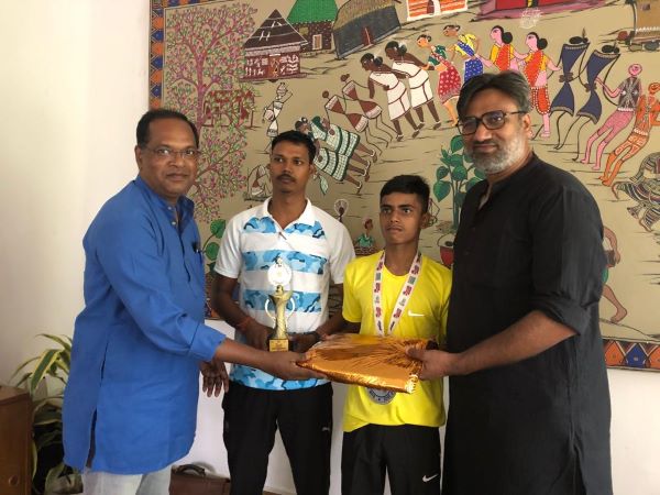 Anish was felicitated at the Urban Services office here today by Mr Sourav Roy, Chief Executive Officer, Tata Steel Foundation and Mr Jiren Topno, Head Tribal Culture and Urban Services, Tata Steel and assured further support in his sporting career ahead.