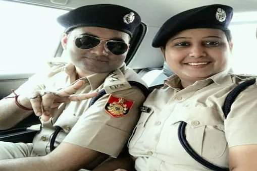 Her husband Roshan Krishna, who is not even a government servant, is seen with her in an official police gypsy showing victory signs. Wife, who had got 13th position in the joint competitive examination conducted by Bihar public service commission, is also seen in police uniform with badge and insignia by the side of her husband wearing police uniform, badge and IPS insignia illegally.