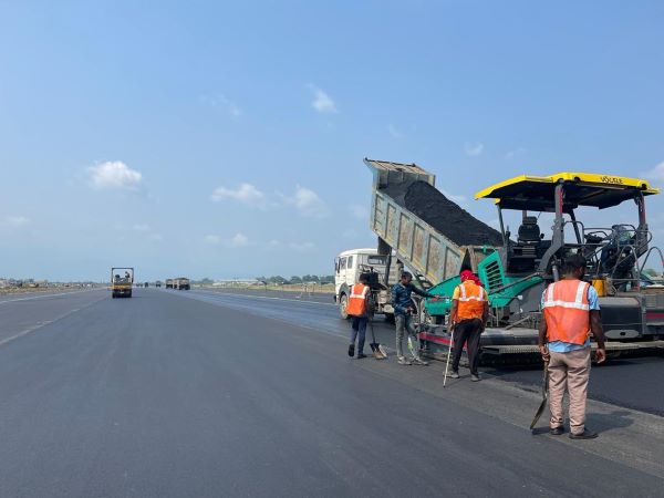 The runway was closed for two weeks for laying three flexible (bituminous) layers, reconstruction of non-load bearing surfaces etc. The work also involved reconstruction of the concrete portion at each end of the runway and widening of the taxi tracks & links as per International Civil Aviation Organisation (ICAO) Standards.
