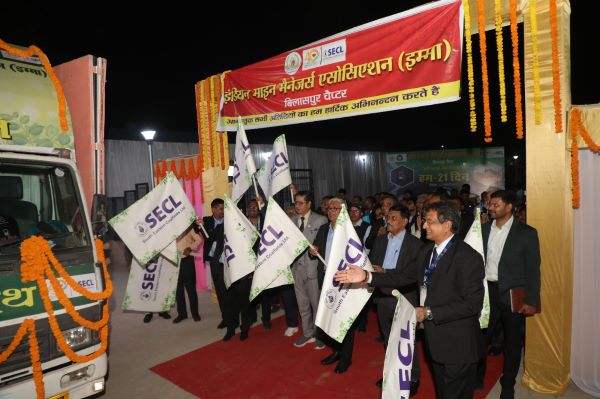 The SECL CMD along with D Sunil Kumar and Chief Vigilance Officer SECL Himanshu Jain, Regional General Managers, IMMA Bilaspur Chapter President Ramesh Kumar Singh, (General Manager Industrial Engineering Department) – Head of Department, IMMA Dhanbad R.K. Sharma and all the participants flagged off the Haritra Rath. The Rath (chariot) is equipped with all the required resources set and will roll in the SECL mining areas to spread the message and to explain and propagate the facts that sensitize at the ground level.