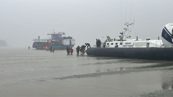 Merchant Vessel ‘Swasthya Sathi’ was ferrying about 400 pilgrims from Ganga Sagar Mela at Sagar Island to Kakdwip when it ran aground due to extremely poor visibility.