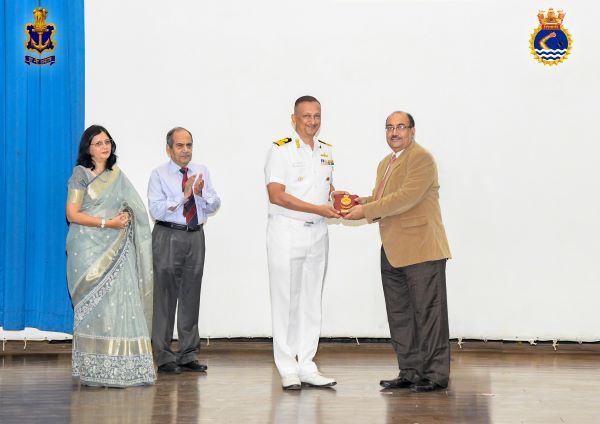 Vice Admiral Dinesh Prabhakar, AVSM, NM, VSM (Retd), Distinguished Chair Marine Engineering, INS Shivaji, received the ’Vir Chakra’ from Padipta Bose and Mrs Gargi Bose, the family members of VAdm Chowdhury on behalf of the Indian Navy. The ‘Vir Chakra’ is an Indian wartime military bravery award presented for acts of gallantry on the battlefield, on land or in air or at sea. VAdm Chowdhury is the only technical officer of the Indian Navy, who has been decorated with this prestigious award.