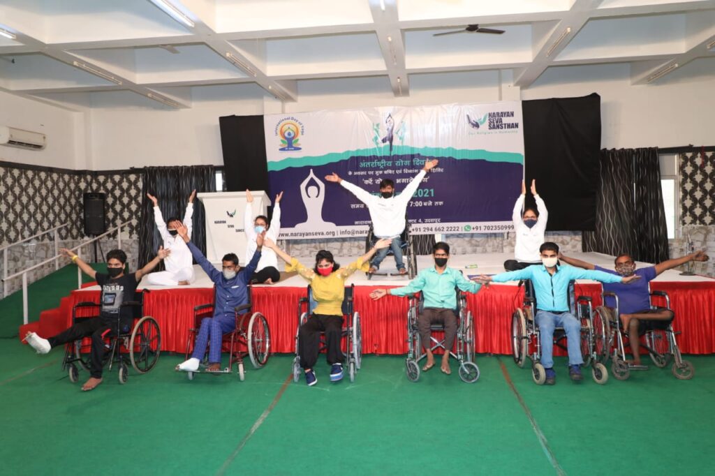 On International Yoga Day, Udaipur-based NGO Narayan Seva Sansthan organized yoga sessions with experts to lead a healthy life in which persons with disabilities and children also participated.