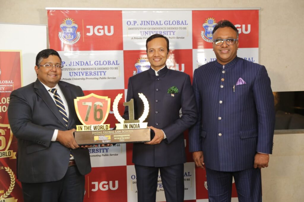 He added that as a twelve-year old university, this achievement is commendable. “I congratulate all the members of our JGU family for making this possible through their commitment, dedication, team-work and perseverance in building a world-class institution. It is indeed a proud moment to be able to contribute consistently to the building of our country and the educational landscape. I congratulate our Vice-Chancellor, Professor (Dr.) C. Raj Kumar, and his outstanding colleagues in JGU and JGLS for bringing this important distinction to India,” Jindal said.