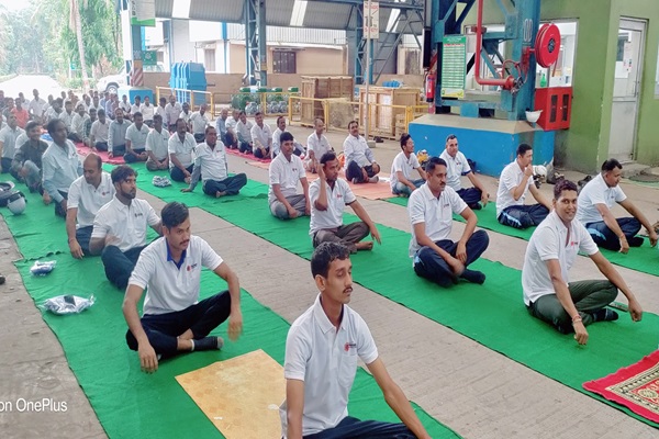Plant Head Nilesh T Shah, HR Head Suryodaya Dubey along with employees and family members of employees participated enthusiastically in the International Yoga Day which started at 8 am. Yoga Guru Shri Prem Kumar gave information about various postures and asanas.