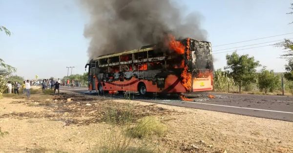 जैसलमेर से जोधपुर जा रही एक निजी बस में मंगलवार शाम आग लगने से 20 लोग जिंदा जल गए जबकि 16 यात्री गंभीर रूप से झुलस गए।