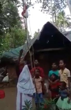 Ammini, wife of Vijayan from Cheruchenam in Thrissur district of Kerala, turned a bamboo stick into a flag post and hoisted the national flag with full honour. She was assisted by her grandchildren Vismaya, Vivek, Vaiga, Sreelakshmi, Sreenand, Shiv Hari and Shivatmika.
