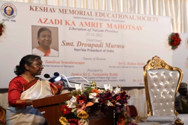 The President of India was addressing the students and faculty members of the Keshav Memorial Educational Society at a function organized as part of Azadi ka Amrit Mahotsav in Hyderabad today. She also inaugurated a photo exhibition on ‘Hyderabad Liberation Movement’ showcasing contributions of regional freedom fighters.
