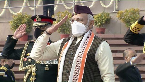 Instead of traditional Pagadi (turban), Prime Minister Narendra Modi was on a different look on the 73th Republic Day; wearing a Brahmakamal cap from Uttarakhand and a Manipuri stole.