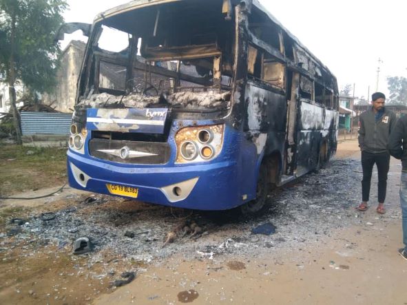 According to reports, Maoists set a passenger bus on fire in Koylibeda of Kanker district last night. The passenger bus was parked in Koylibeda when armed Maoists struck and set the bus on fire by asking the driver and conductor to get off. The vehicle belonged to Habiba Bus Transport Service.