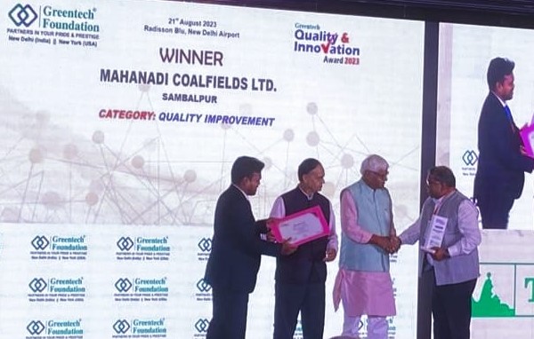 Mahanadi Coalfield Limited (MCL) secured the prestigious first prize in ‘Quality Improvement’ from the esteemed Greentech Foundation.