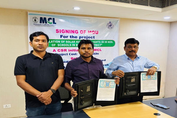 Mahanadi Coalfields Limited (MCL) signed a MoU with the District Administration, Bhadrak for the installation of solar high mast LED lights in nine government schools of the district.