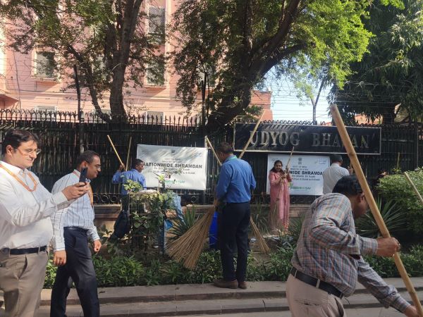Officials, employees, and safai mitras also participated in the Nationwide Shramdan ‘Ek Din Ek Ghanta Ek Saath’ on 25.09.2025 from 8:00 AM to 9:00 AM outside Udyog Bhawan, demonstrating collective responsibility towards a clean environment.