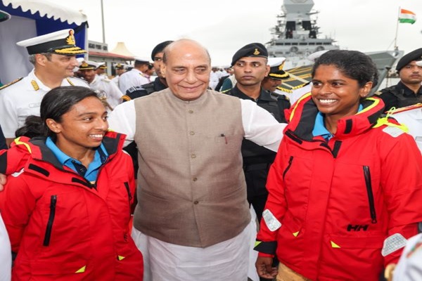 Rajnath Singh praised the duo for facing physical & mental obstacles head on, overcoming them with strength and proving to the world that they are the brave daughters of India. He commended the mental strength of the women officers as they successfully dealt with the feeling of loneliness during their eight-month-long voyage. He stated that not everyone can accomplish the feat achieved by Lt Cdr Dilna K and Lt Cdr Roopa, which speaks volumes of their grit, determination & strength.
