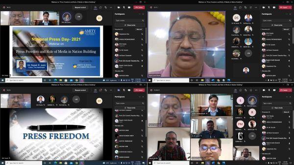 Amity School of Communication organized a webinar on “Press Freedom and the Role of Media in Nation Building” to celebrate National Press Day.