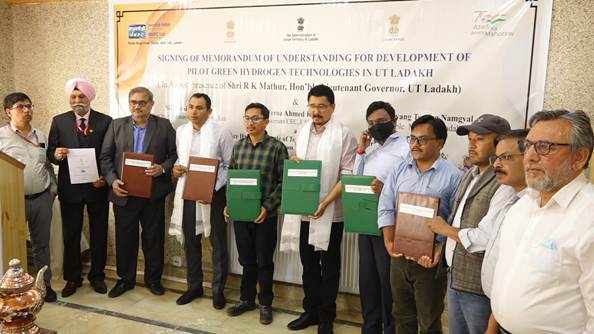 NHPC signed two Memoranda of Understanding (MoUs) for the development of “Pilot Green Hydrogen Technologies” in line with the country’s resolve to reduce the carbon footprint in the Power Sector in Leh and Kargil districts of Union Territory of Ladakh yesterday.