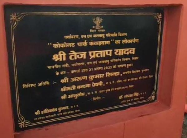 Officials of the forest and environment department had put inauguration plates in B sector of Kankarbagh colony and the name of Tejpratap was inscribed on it. Invitation cards issued by the principal chief conservator of forests also mentioned that the minister would open the Coconut Park.